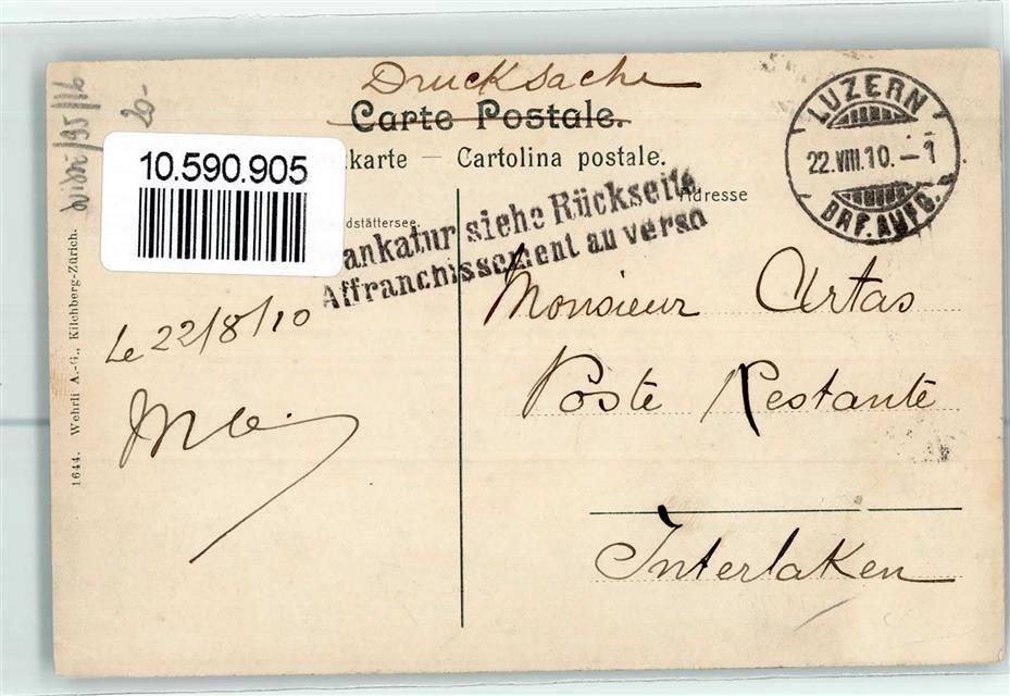 6000 Luzern Lucerne 1910 - Bahnlinie Ort lt. Stempel