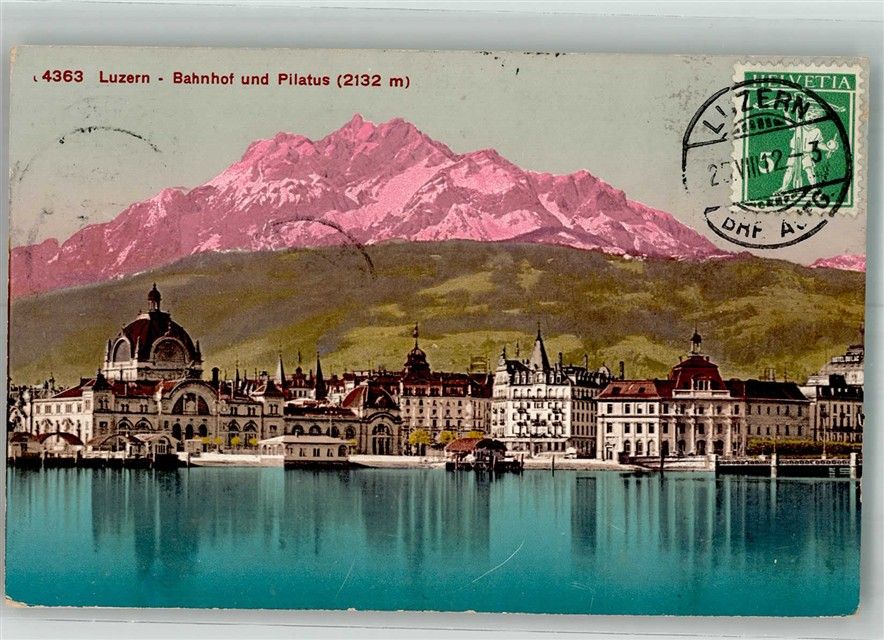 6000 Luzern Lucerne 1912 Foto AK Bahnhof Pilatus Briefmarke bildseitig