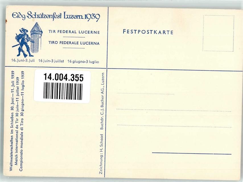 6000 Luzern Lucerne 1939 Künstlerkarte Weltmeisterschaften im Schießen, der Veteran
