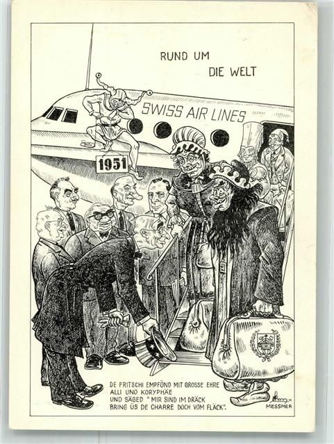 6000 Luzern Lucerne 1951 Künstlerkarte Karikatur Brachtum Beim Bärteliessen leistete dem Fritschivater + Gallizunft sign. Messmer