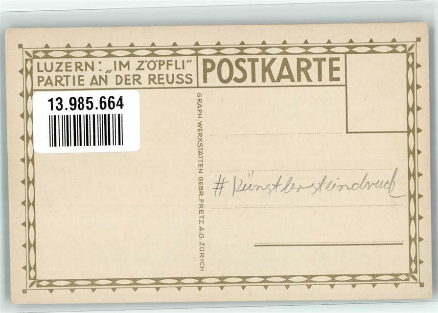 6000 Luzern Lucerne Künstlersteindruck sign. Schlatter, E. Im Zöpfli