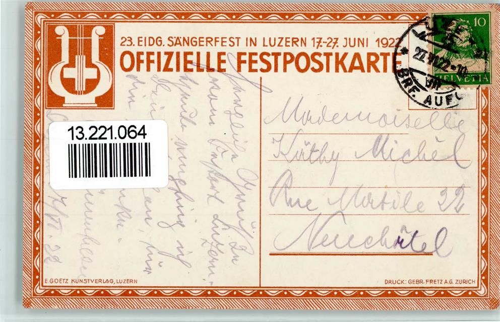 Luzern, 23 Eidgenössisches Sängerfest 1922 Dirigent