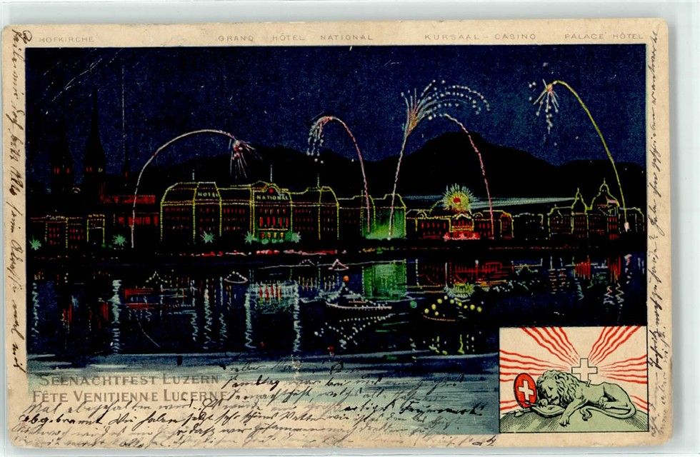 6000 Luzern Lucerne Lithographie / Künstlerkarte 1906 Seenachtfest