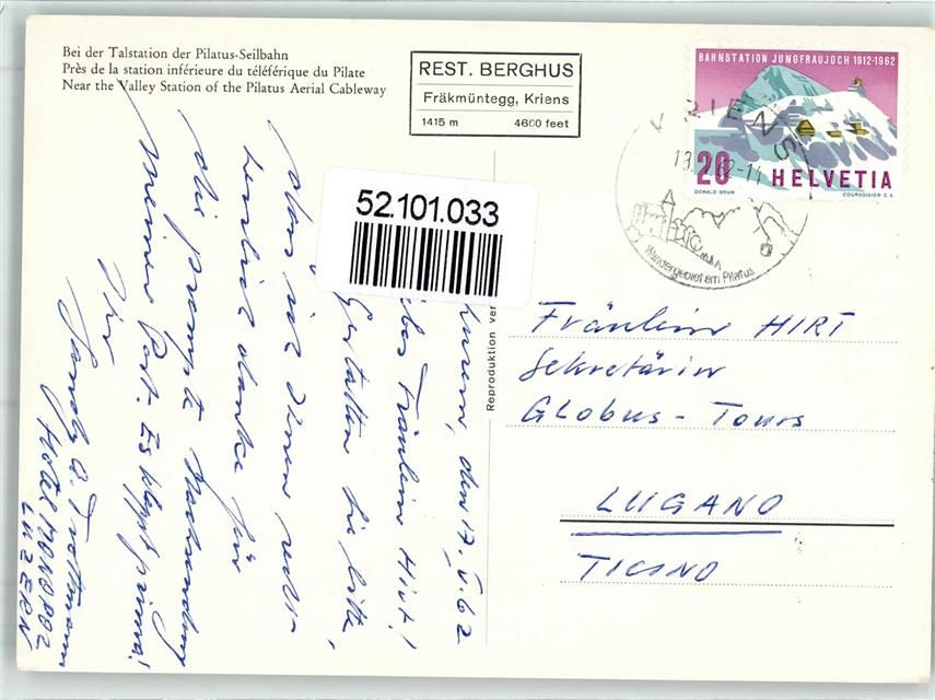 6010 Kriens - Gasthaus Berghus Fräkmüntegg