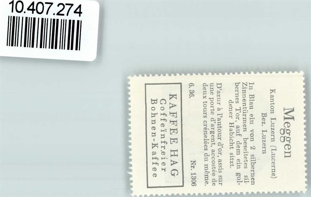 6045 Meggen - Vignette Wappen Kaffee Hag 1920-1940 Habicht