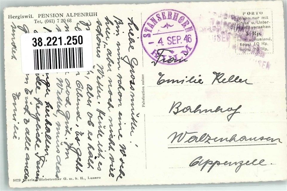 6052 Hergiswil NW 1946 Foto AK Pension Alpenruh
