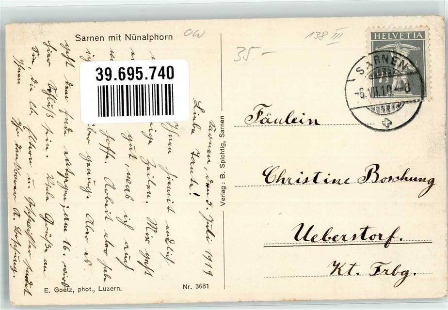 6060 Sarnen 1910 Gebrauchsspuren Nünalphorn Foto Goetz