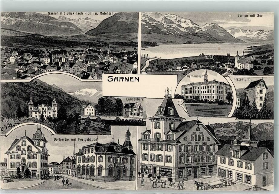 Sarnen, See Postgebäude Gymnasium Landenberg Geschäft Franz Hurni-Enzmann Hexenturm