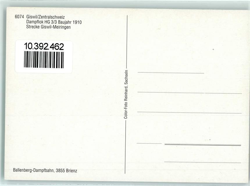 6074 Giswil 1910 - Dampflok HG 3/3 Strecke Giswil Meiringen Ballenberg Dampflok