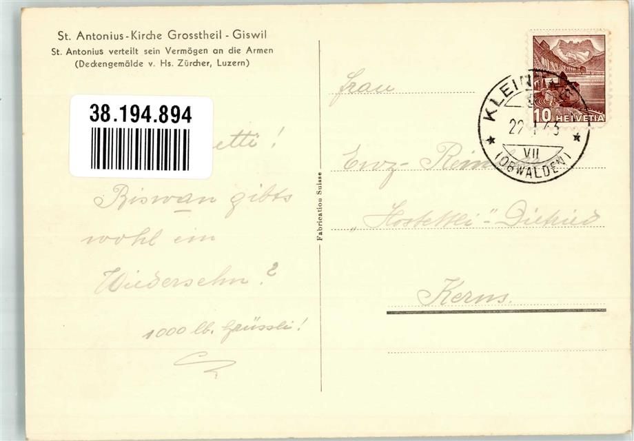 6074 Giswil 1963 Foto AK Kirche St. antonius Deckengemälde