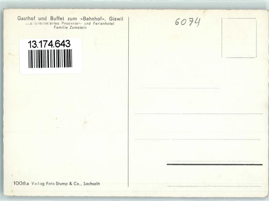 6074 Giswil - Gasthaus Buffet Zum Bahnhof Fam. Zumstein