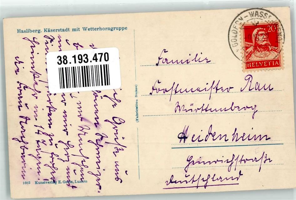 6085 Hasliberg Goldern 1927 Foto AK Käserstadt Wetterhorngruppe