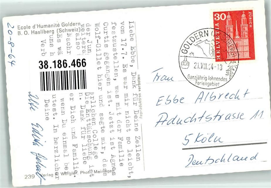 6085 Hasliberg Goldern 1964 Foto AK Ecole d´Humanité