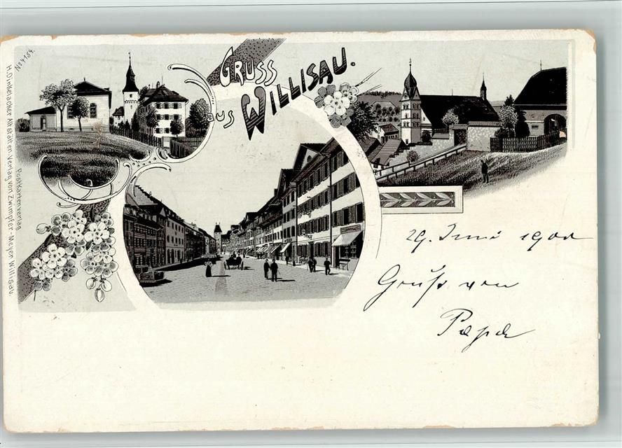 6130 Willisau 1900 BOAKC Lithographie 2 zeiliger Balkenstempel