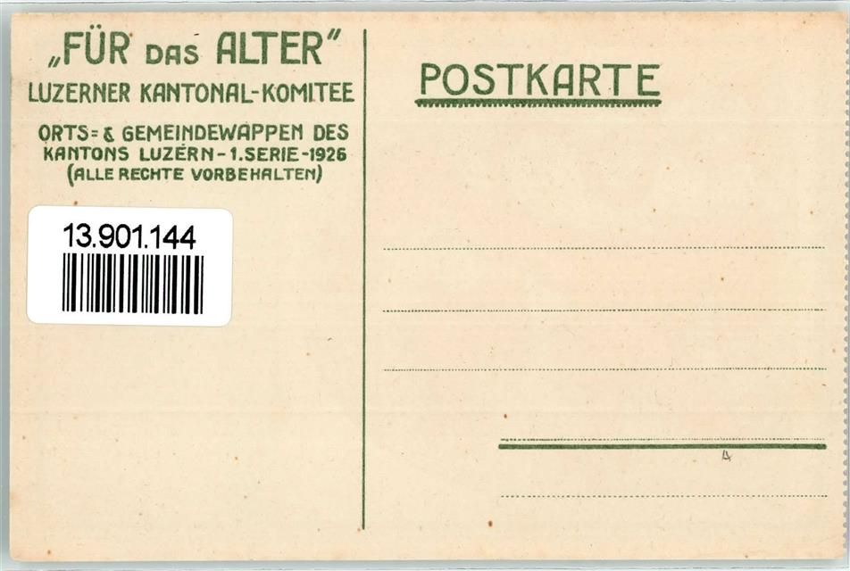 6130 Willisau - Wappen Für das Alter Luzerner Kantonal-Komitee 1. Serie 1926