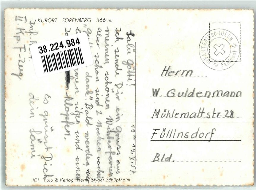 6174 Sörenberg 1957 Winter Feldpost Infanterieschulen