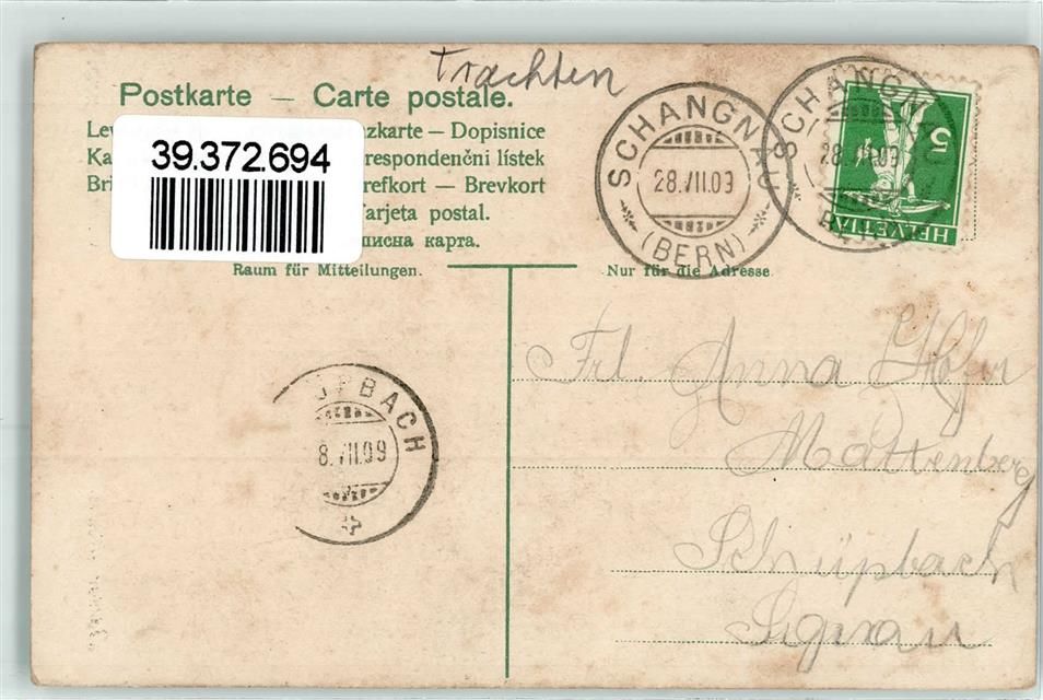Schangnau, Trachtenfrauen Ort lt. Stempel