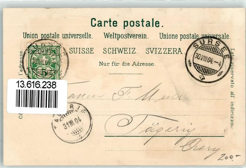 6210 Sursee 1904 Lithographie Unterstadt Oberstadt Engel