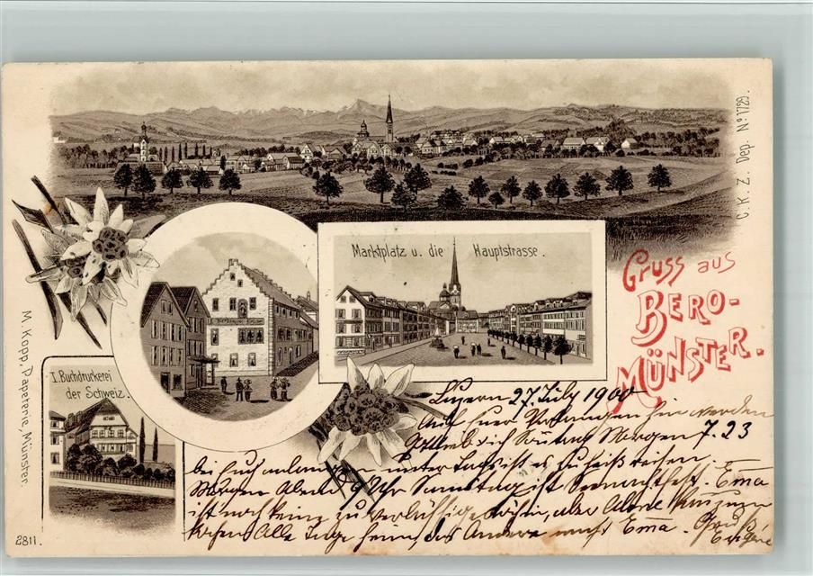 Beromünster, Lithographie Marktplatz Hauptstraße 1. Buchdruckerei der Schweiz Verlag Künzli Nr 1729