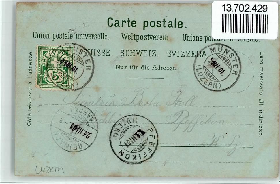 Beromünster, Lithographie/Mondschein Stiftskirche Pfarrkirche Verlag Künzli Nr 752