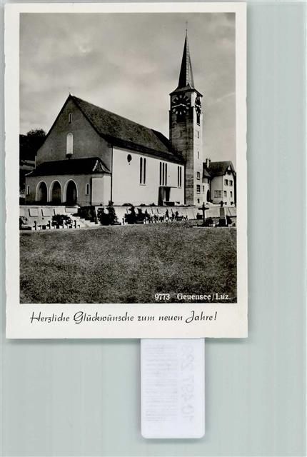 Geuensee, Kirche Kreuz Friedhof Treppe Neujahr Foto 10cm x 7cm, rückseitig Haftspuren
