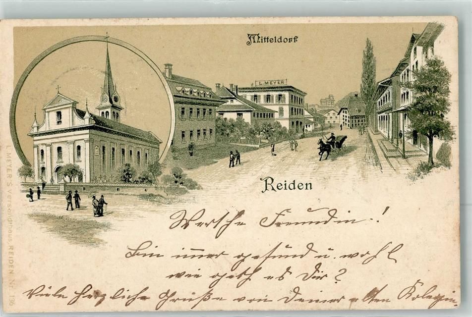 6260 Reiden 1901 Lithographie Mitteldorf Kirche Haus L. Meyer