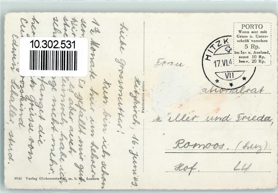 6285 Hitzkirch 1949 Gebrauchsspuren mit Lehrerseminar