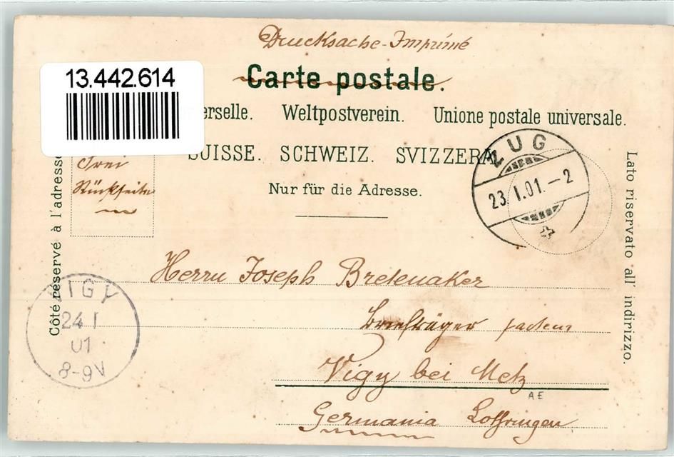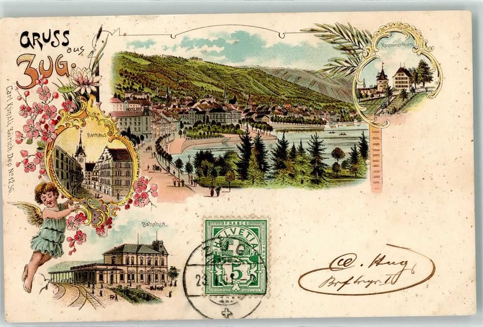 6300 Zug Zugo 1901 - Rathaus Bahnhof Kapuzinerturm Engel