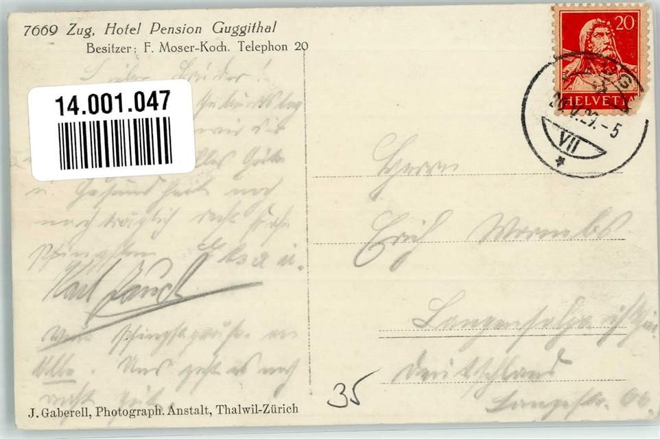 6300 Zug Zugo 1929 Foto AK Hotel Pension Guggithal