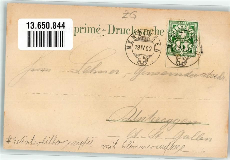 6313 Menzingen 1902 Winterlithographie Töchter-Institut u. Lehrerinnen-Seminar m. Glimmerauflage