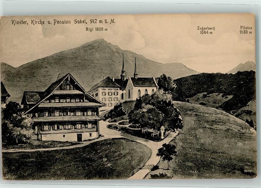 6313 Menzingen Künstlerkarte Gasthaus u. Pension Gubel Kloster u. Kirche Rigi Zugerberg Pilatus sign.