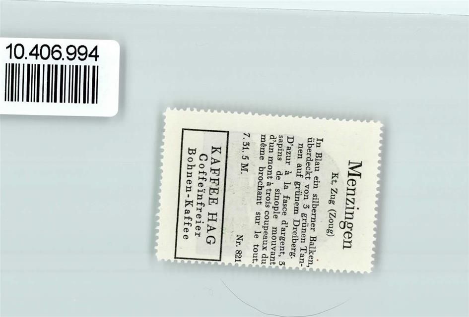 6313 Menzingen - Vignette Wappen Kaffee Hag 1920-1940