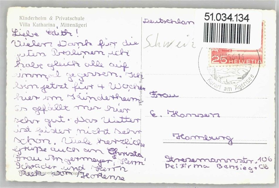 6314 Neuägeri - Kinderheim, Privatschule Villa Katharina Mittenägeri AKU1