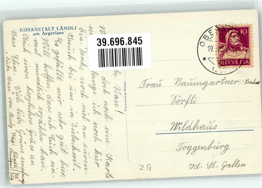 Oberägeri, Winter Kuranstalt Ländli Ort lt. Stempel