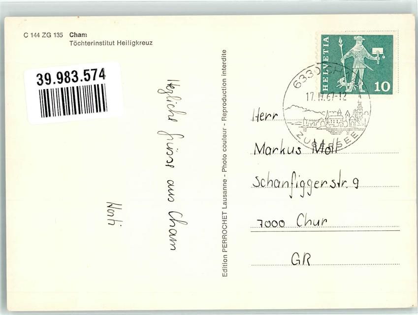 6330 Cham 1967 Foto AK Töchterinstitut Heiligkreuz