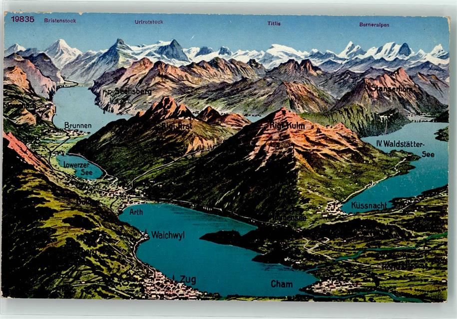 Cham, Vierwaldstättersee Vogelschau Zugersee
