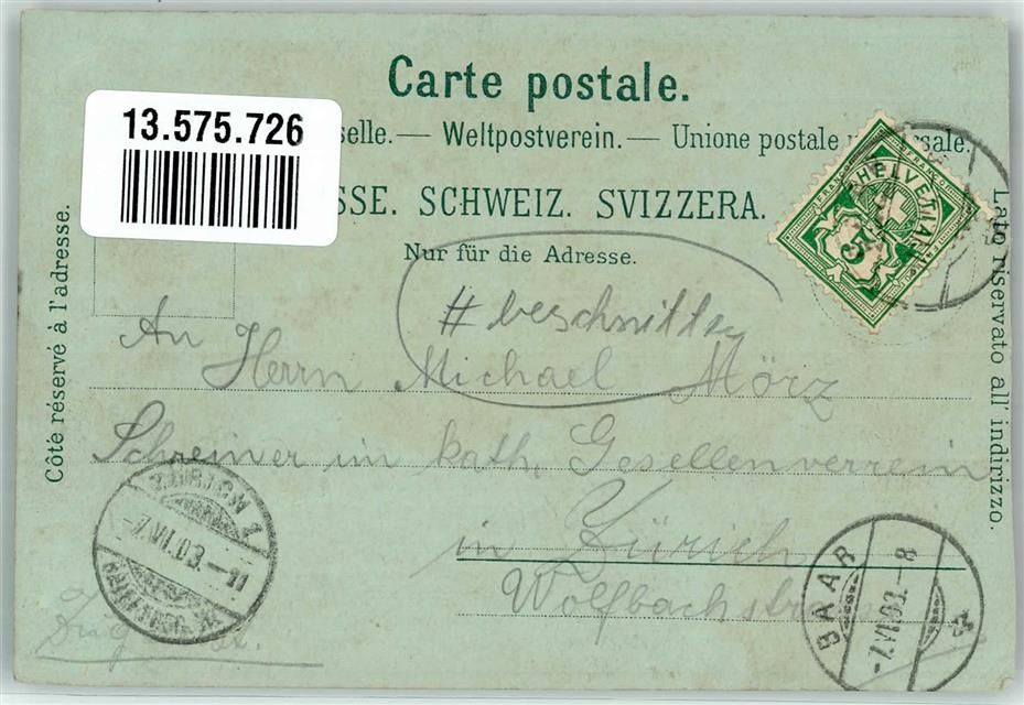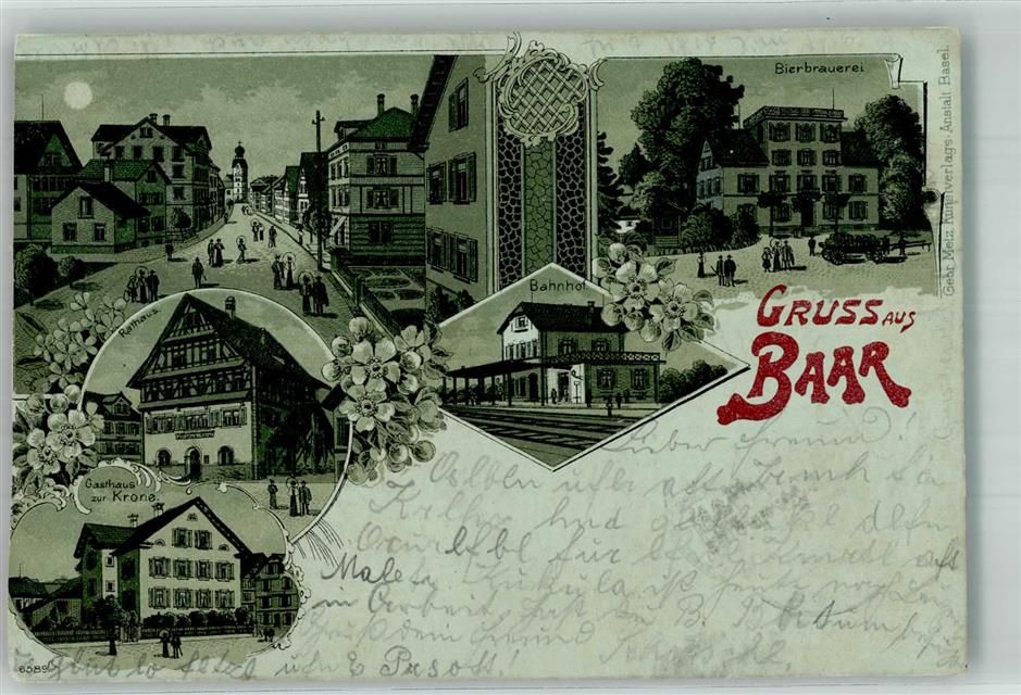 Baar, Bahnhof Brauerei Gasthaus zur Krone Lithographie beschnitten