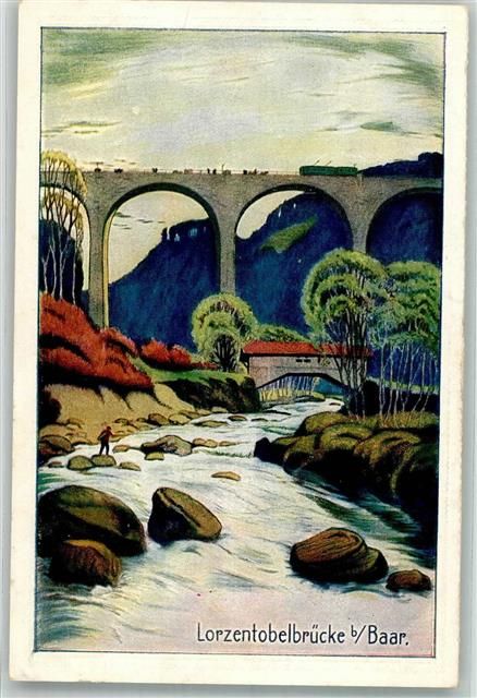 6340 Baar Lithographie / Künstlerkarte Lorzentobelbrücke Sängerfest 1927 Festpostkarte