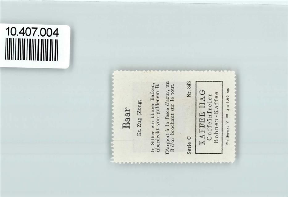 Baar, Vignette Wappen Kaffee Hag 1920-1940