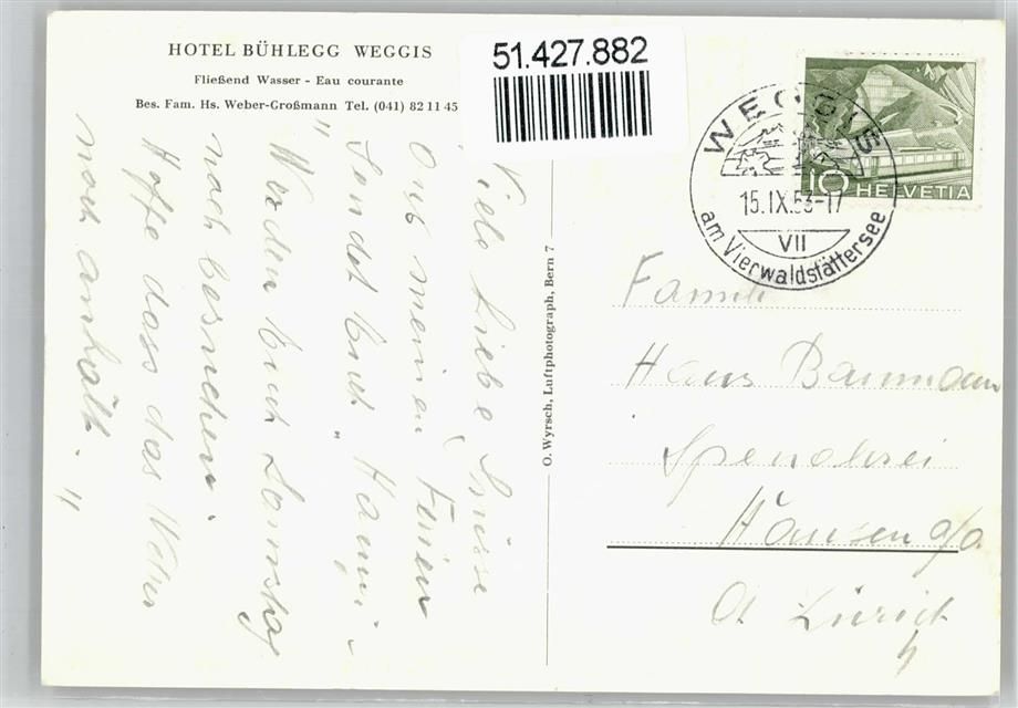 6353 Weggis 1953 - Hotel Bühegg