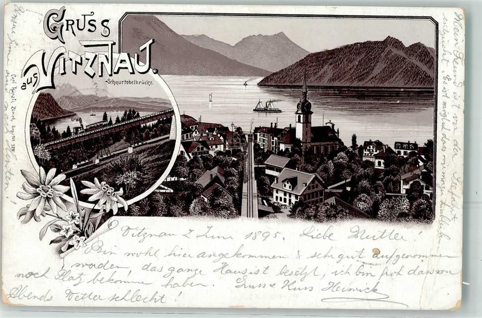6354 Vitznau 1895 Gebrauchsspuren Schnurtobelbrücke Lithographie Vorläufer