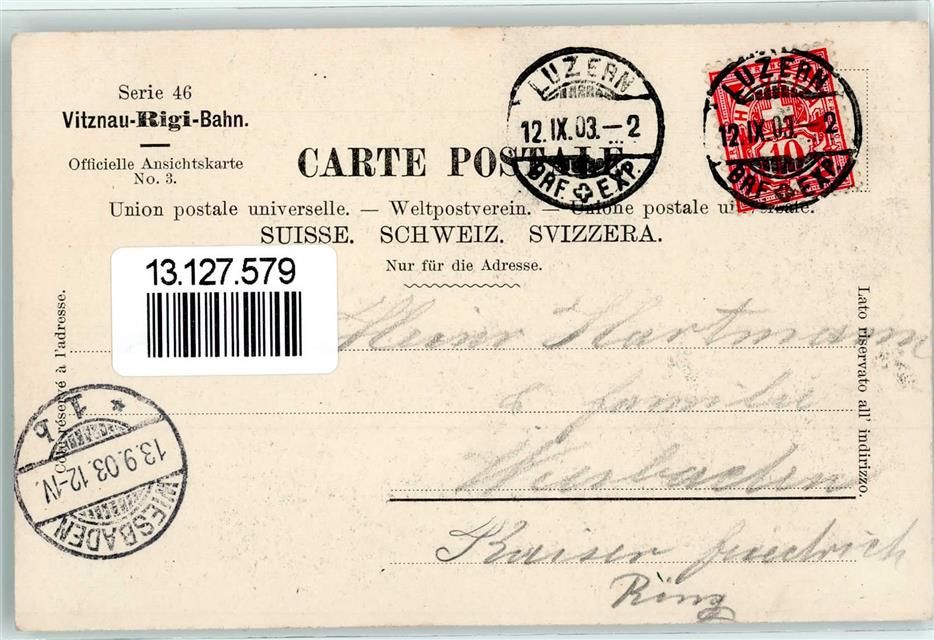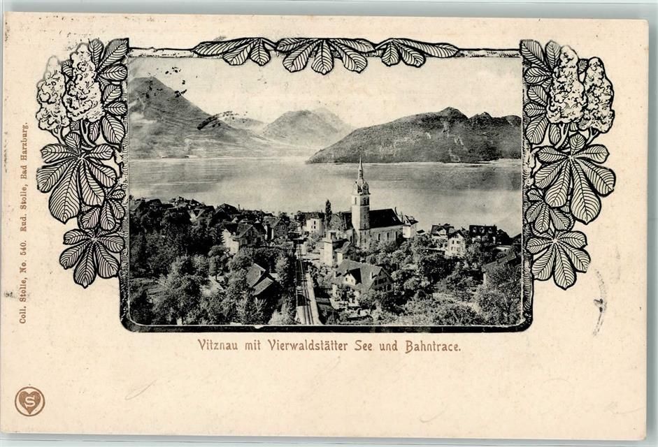 6354 Vitznau 1903 - Vitznau mit Vierwaldstätter See und Bahntrace KAstanienblätter