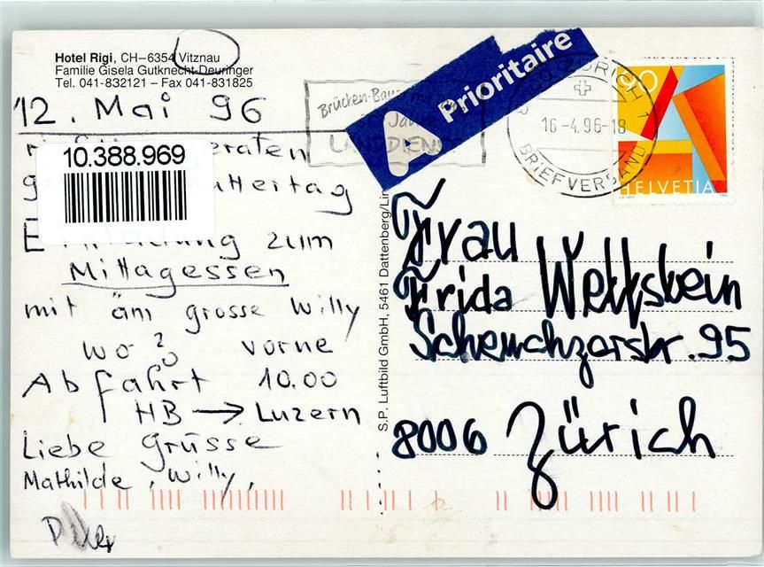 6354 Vitznau 1996 - Hotel Rigi Oldtimer Flugaufnahme
