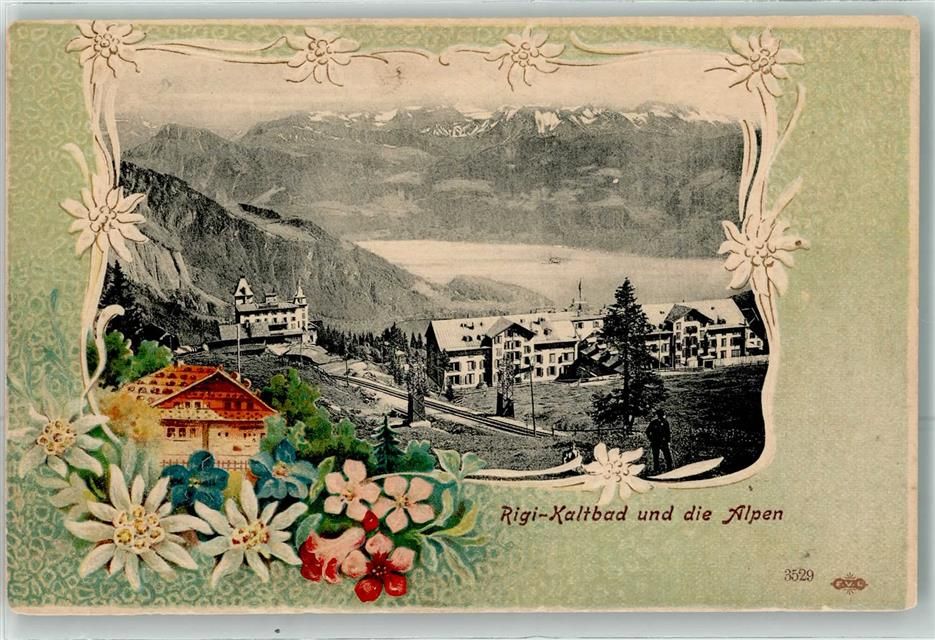 6356 Rigi Kaltbad Prägedruck Alpen Edelweiß Passepartout Lithographie