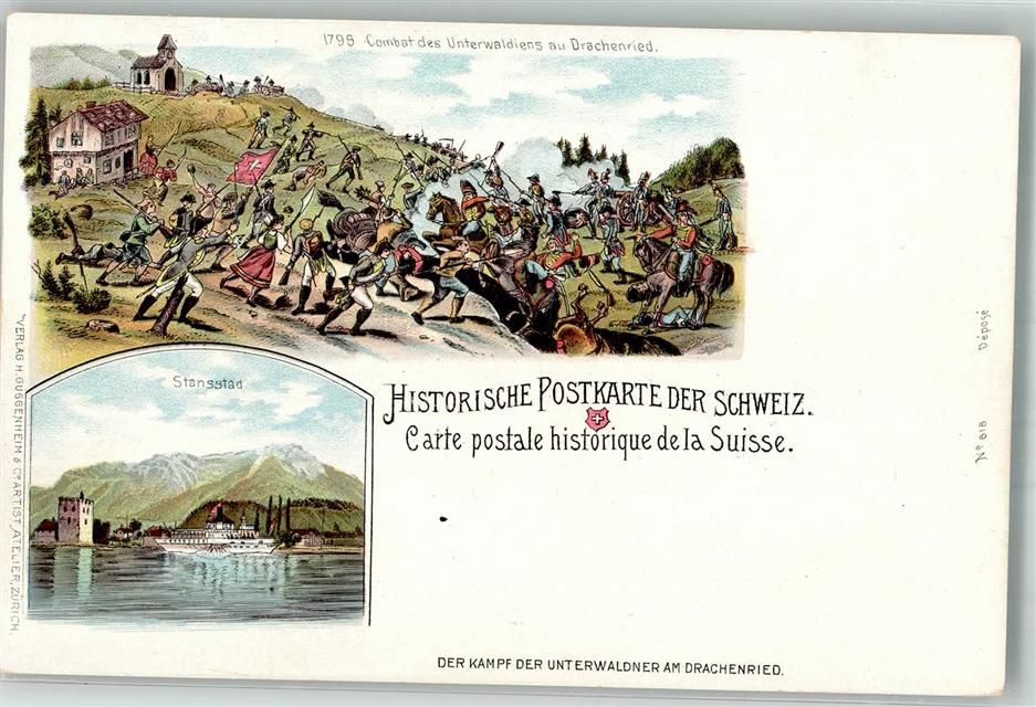 6362 Stansstad Lithographie Kampf der Unterwalder am Drachenried