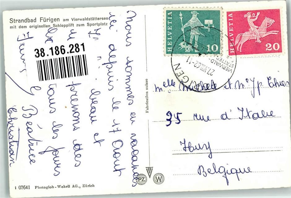 6363 Fürigen 1962 Foto AK Schwimmbad Seilbahn Sportplatz