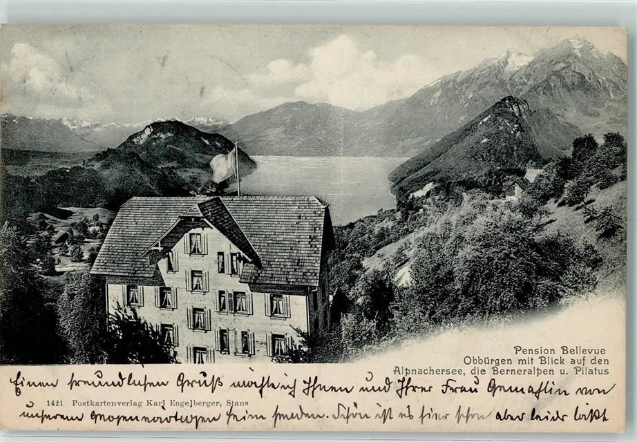 6363 Obbürgen 1907 - Pension Bellevue mit Blick auf den Alpnachersee Berneralpen und Pilatus