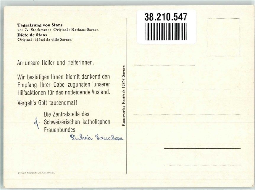 6370 Stans Künstlerkarte Spende sign. Stockmann, A. Tagsatzung von Stans