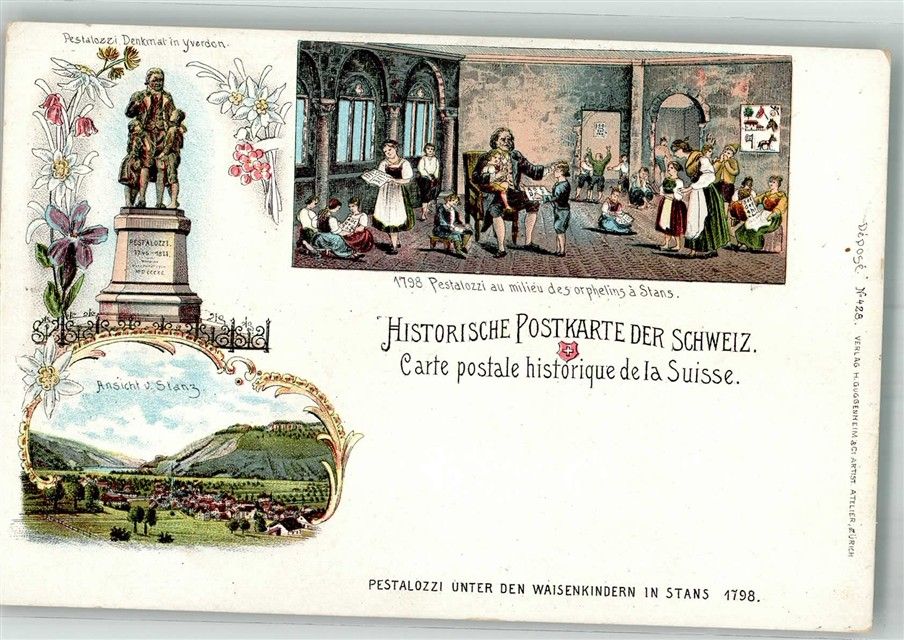 6370 Stans Lithographie Historische Postkarte Schweiz Denkmal Pestalozzi unter den Waisenkindern 1798