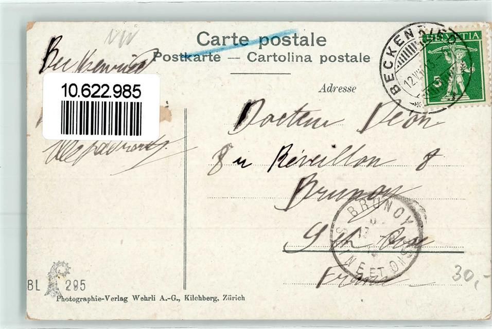 6375 Beckenried 1913 - Ruderboot Kirche